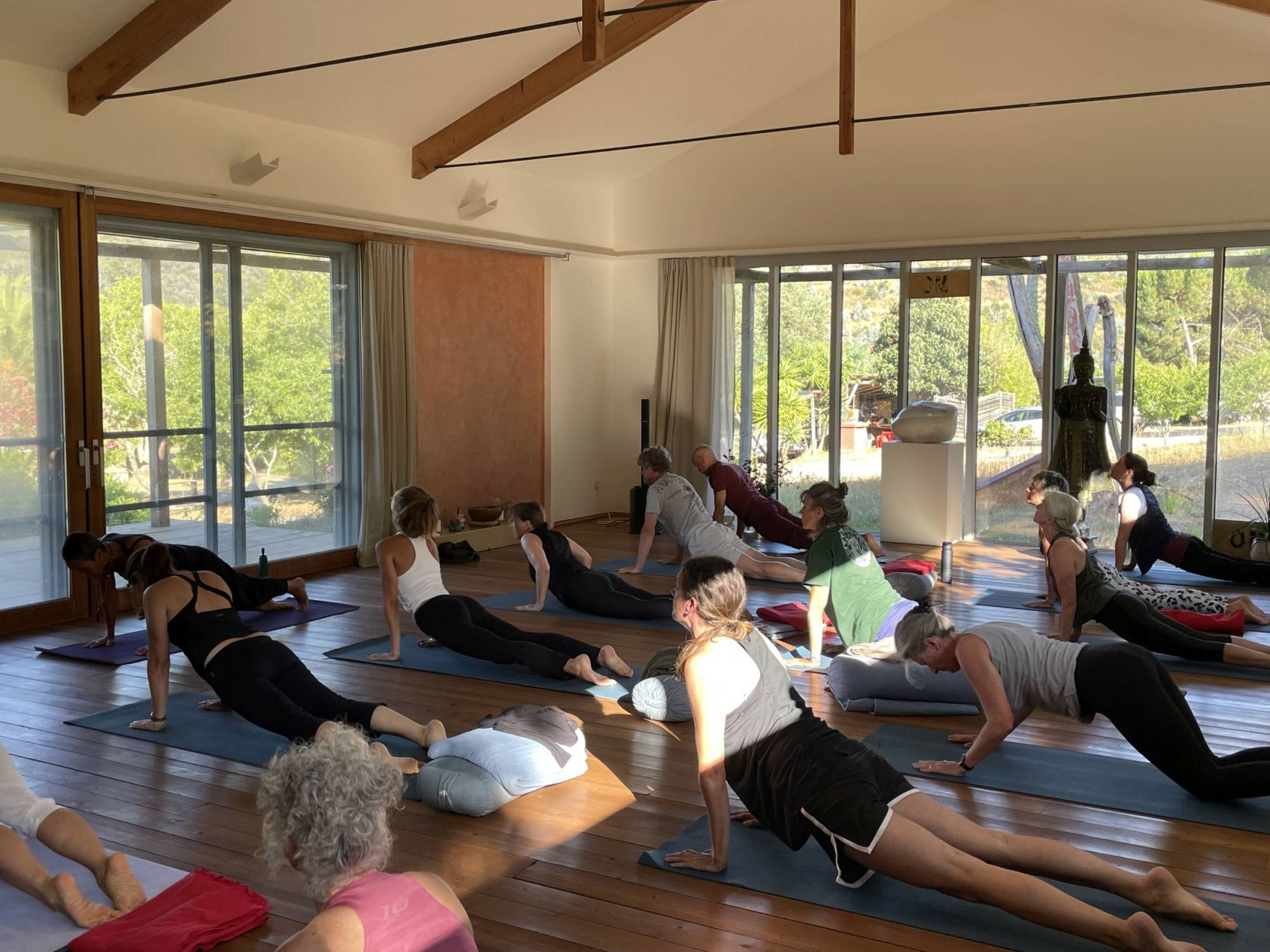 The retreat week consists of five days with two yoga sessions per day, one in the morning, one in the late afternoon and evening Meditations on two days.